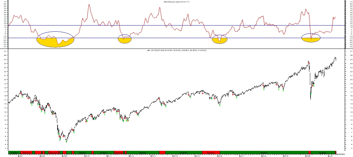 Il mio Efficiency index, vedi la parte superiore del grafico, ha generato un ottimo segnale di ingresso all’inizio dello scorso mese di aprile, con l’effimero cedimento di -15, mentre ora interessa quota +35 che corrisponde, nel caso specifico, a una resistenza statica.