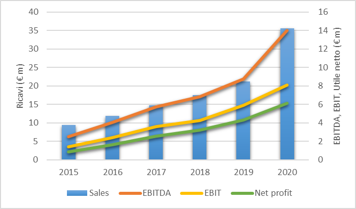 Negli ultimi anni l’azienda è stata protagonista di una crescita ininterrotta, sia in termini di ricavi sia di marginalità, con un tasso medio annuo composto di crescita degli utili che raggiunge il valore record di 48%.