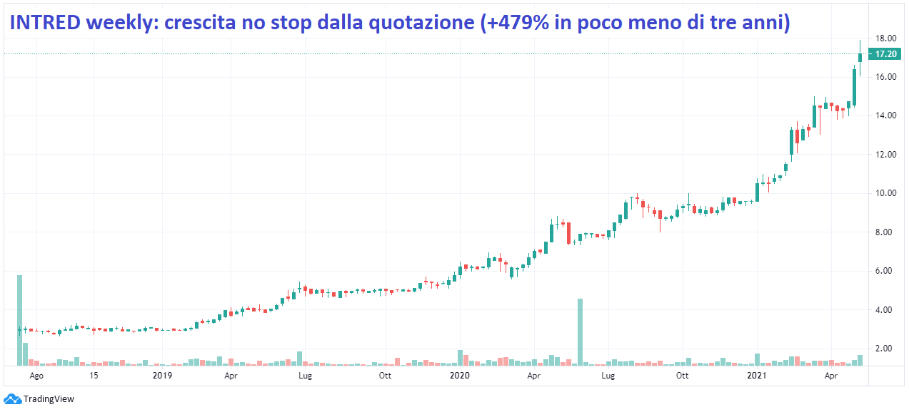 Scorrendo la classifica dal vertice, saltando le azioni con alcuni indicatori non disponibili, quelle già analizzate in passato e quelle che recentemente sono state oggetto di OPA (Credito Valtellinese, Isagro e ASTM), si incontra Intred, con un ATF index pari a 65.