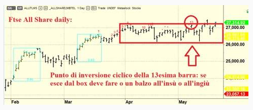 Con più o meno volatilità e pur in una differenza abissale di comportamento Nasdaq e Ftse All Share stanno costruendo una congestione orizzontale. E questo di per sé è positivo perché le bolle quando scoppiano lo fanno con inversioni improvvise e violente con pattern tipi del tipo “key reversale” o altre amenità di questo genere. Una distribuzione alla fine di una bolla è rara se non impossibile. Io vedo piuttosto una bella congestione orizzontale e quindi uno sfondamento al ribasso nella più tradizionale trappola per orsi e quindi la resurrezione magari verso fine agosto. In più sul Ftse All Share abbiamo un punto di inversione ciclico del Sequential per cui o sale o scende con violenza, almeno così vorrebbe l’analisi ciclica del Sequential.