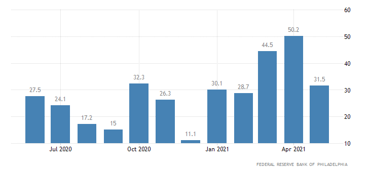 Importante contrazione per l’indice che misura lo stato di salute del settore manifatturiero della regione di Filadelfia, che passa dai 50,2 punti di aprile agli attuali 31,5; ben al di sotto del consensus, fissato a 43 punti. Il dato è elaborato dalla Federal Reserve Bank di Philadelphia.