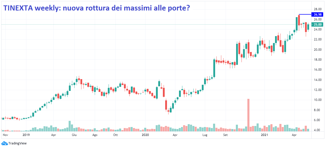Nei mesi scorsi, inoltre, più volte Tinexta è stata citata dai giornalisti finanziari tra i titoli che potrebbero beneficiare in modo sostanziale degli oltre 200 miliardi messi a disposizione dal PNRR (Piano Nazionale di Ripresa e Resilienza), gergalmente detto Recovery Fund. Esso individua sei “missioni”, ovvero settori su cui saranno indirizzati gli investimenti, tra cui “Digitalizzazione, innovazione, competitività, cultura e turismo” (https://www.governo.it/sites/governo.it/files/PNRR_0.pdf).