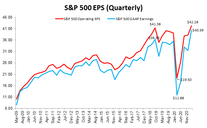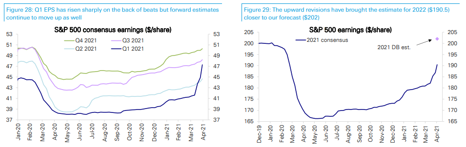 a) l'87% delle aziende batte le stime, in media di un pazzesco 19.8% (Bloomberg riporta il 23.5%, forse per non aver aggiornato la stima degli analisti), contro la media di lungo periodo del 4% circa. Ormai sono 3 trimestri che il consenso viene stracciato. Ma, mentre nel quarto trimestre del 2020 una sorpresa media del 14% aveva implicato un +10% sul trimestre precedente (gli analisti vedevano un calo), qui il +20% si traduce in un pari incremento sul trimestre precedente. E solitamente la stagionalità del primo trimestre dell'anno è molto più debole di quello finale. Anno su anno è un +46%, ma ha poco significato, visto il termine di paragone.
