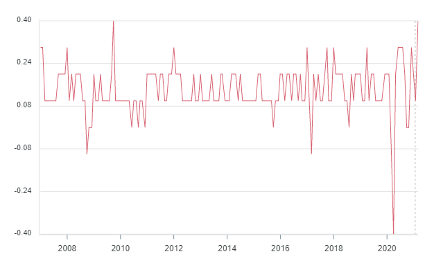 Lieve delusione per il dato preliminare del PIL annualizzato che nel primo trimestre segna una crescita del 6,4%, appena sopra la previsione del +6,1%. Il 2020 si era chiuso con un dato trimestrale del +4,3% ma ci sono dei fattori che migliorano di parecchio il quadro: