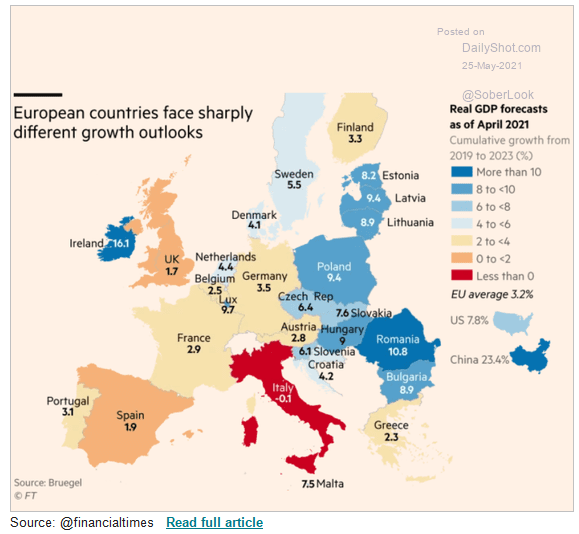 Va bene l’ottimismo perché uno fino al giorno prima del suo funerale deve essere ottimista ma attenti a non esserlo il giorno stesso del funerale perché sarebbe eccessivo. Alcuni grafici che vi danno il polso della situazione. Il primo mostra come la nave Italia abbia i motori ormai fuori uso perché il tasso di crescita previsto è la maglia nera dell’intera Europa: