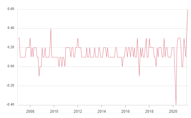 Oltre ad essere favorito da un dollaro più debole, l'Oro sta trovando giovamento da una stampa di denaro senza precedenti e da uno stimolo monetario in corso altrettanto senza precedenti. La quantità di denaro M2 che circola nell'economia statunitense è aumentata di circa il 21% rispetto a un anno fa. Nel frattempo, la Federal Reserve mantiene il suo programma di acquisto di obbligazioni. A partire dalla scorsa settimana, la dimensione del bilancio della banca centrale era di poco inferiore alla sbalorditiva cifra di 8 trilioni di dollari. Anche l'inflazione continua ad essere presente nei pensieri degli investitori, migliorando ed aumentando i casi di investimento sull'Oro. La scorsa settimana abbiamo visto emergere ancora più dati che avvertono i mercati che i prezzi potrebbero salire al rialzo nel breve termine.