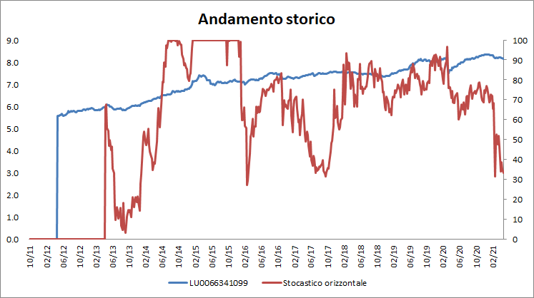 Lo Stocastico orizzontale ci ha mostrato un asset storicamente affidabile, individuato all’interno di un’area di supporto molto interessante, mentre l’analisi tecnica ci suggerisce di non entrare ora su questo fondo. Meglio attendere il proseguimento della discesa verso l’area 8.0/7.8 prima di prendere una posizione.