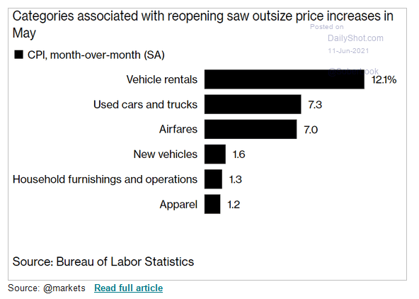 Nel grafico che segue ci sono i maggiori incrementi dell’inflazione USA e come si vede sono relativi proprio agli effetti della pandemia:
