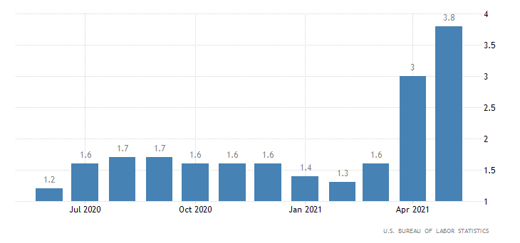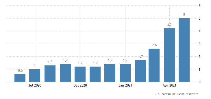 Questi numeri rafforzano l'impressione che gli ultimi 2 report mensili sul mercato del lavoro (nonfarm payrolls pubblico e privato) non rendano giustizia al vero stato del mercato del lavoro o, quanto meno, conducano ad una robusta sottostima della domanda. A tal proposito, interessante sarà vedere come uscirà il PPI di maggio martedì prossimo, ma le stime attuali vedono il PCE Core - la misura preferita della FED - superare il 3% a maggio 2021 per la prima volta dai primi anni '90.