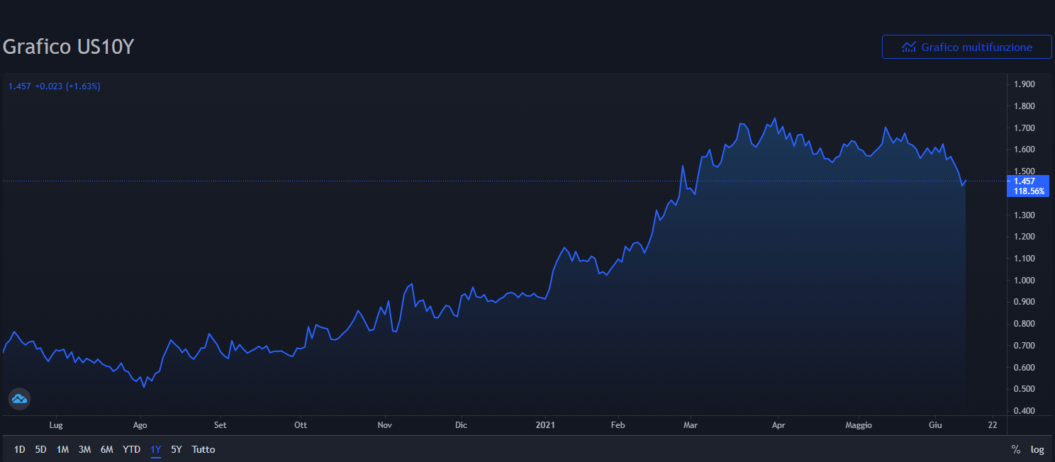 Settimana positiva, quella appena trascorsa, su due dei tre principali indici azionari USA. Infatti a Wall Street, nonostante un dato sul CPI più alto delle attese, l’S&P è riuscito ad archiviare un nuovo record a 4249 punti. L’accelerazione dei prezzi al consumo non ha fermato neanche il NASDAQ che, al contrario, ha outperformato con la complicità sia del settore biotech, grazie all'approvazione del nuovo farmaco per l'Alzheimer di Biogen, che ha fruttato un +38% all'azione e riversando effervescenza in tutto il settore, sia il Treasury che ha chiuso con rendimenti nominali paria a 1.457% con un minimo a 1,428% e rendimenti reali reali collassati a -0.92%. Mentre il movimento sui tassi ha appesantito l’indice DOW JONES con vendite sui settori finanziari, industriali ed energetici.