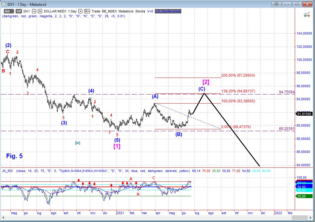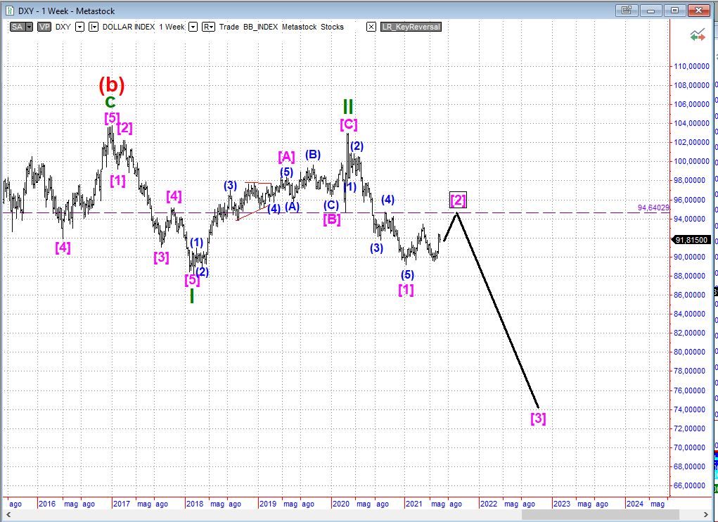 Sul Dollaro abbiamo assunto come principale quello che fino alla scorsa settimana era lo scenario alternativo e attendiamo di capire se la correzione terminerà come speriamo in area 94-95 o se sarà più profonda.