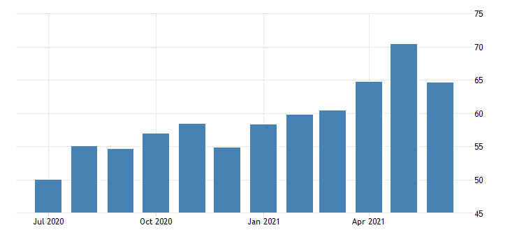 Il dato PMI sul settore dei servizi elaborato da Markit Economics a giugno si attesta appena sotto le stime preliminari di 64,8 punti registrando un 64,6. Si tratta di una contrazione rispetto al picco di 70,4 punti di maggio.