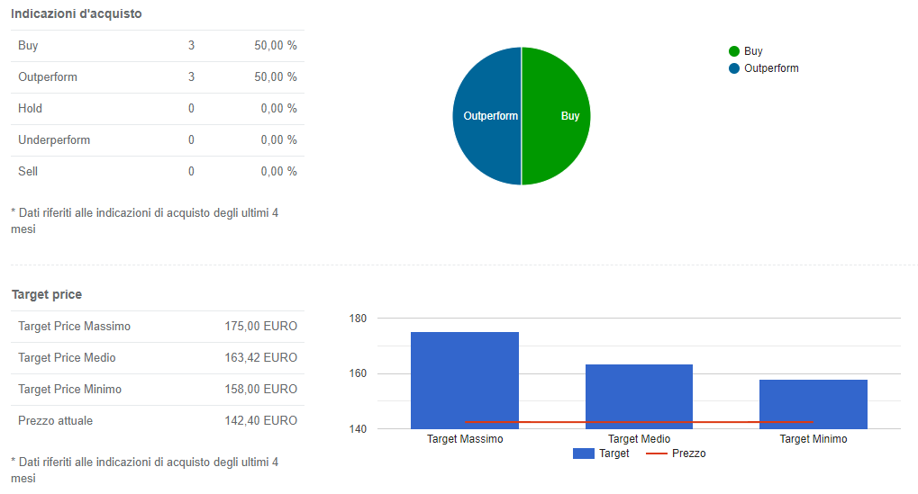 Gli analisti che coprono il titolo, invece, sembrano essere convinti che la società possa stupire ancora il mercato: negli ultimi quattro mesi si sono espressi unanimemente in senso positivo su SeSa, attribuendole un target price medio che incorpora un potenziale di upside del 14.76% rispetto alla quotazione attuale.