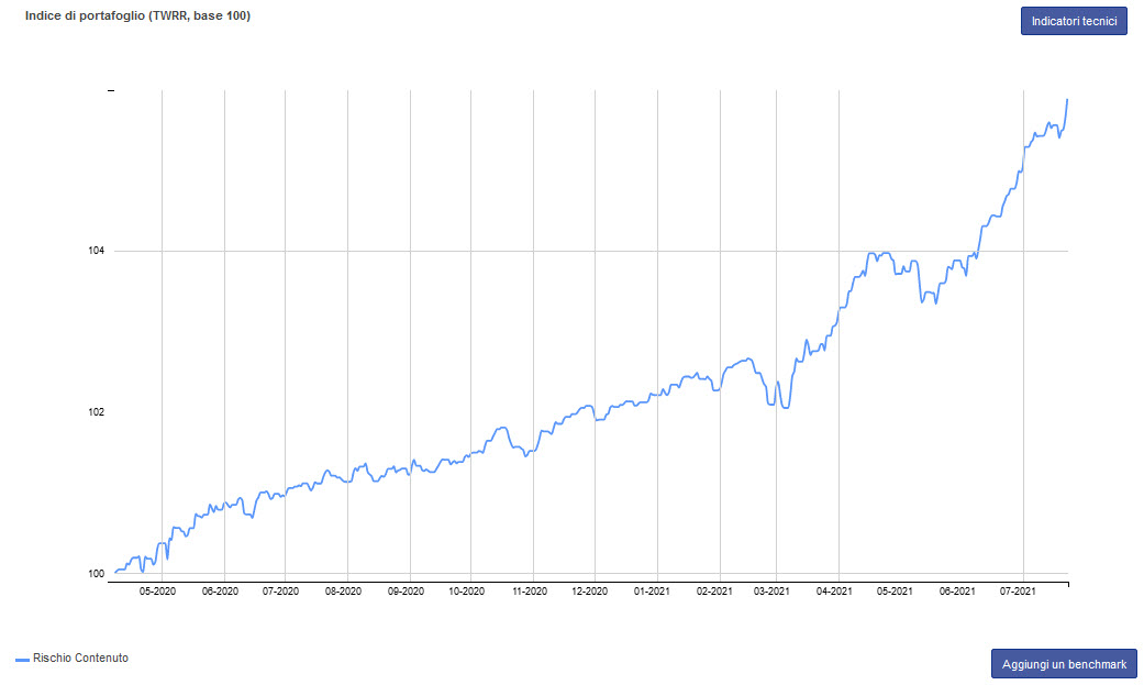 4) L’orizzonte temporale del portafoglio Rischio Contenuto è di medio/lungo termine nel suo complesso, perchè il suo scopo è far crescere un patrimonio in ottica di amministrazione del risparmio e non in ottica di trading mordi e fuggi.