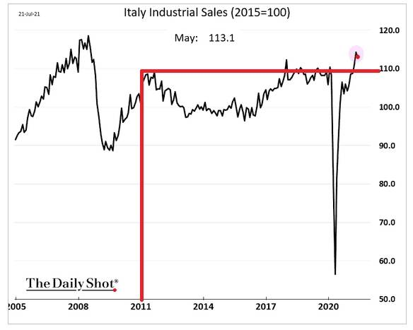 Ma in realtà anche in Italia le vendite nel settore industriale mostrano una situazione che spesso nei grandi giornali viene sottaciuta: il trenino della felicità ha ripreso a correre come non succedeva dal 2011 ad oggi.