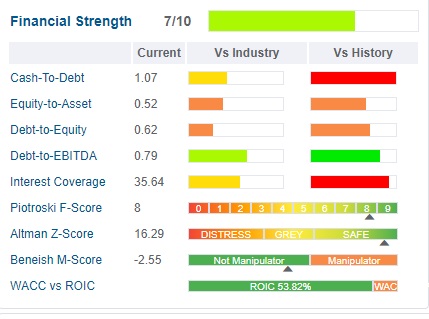 L’indicatore Piotroski a 8 indica che le azioni dell’azienda sono assolutamente sicure per gli investitori che decidono di comprarle. L’indicatore Piotroski combina voci dello stato patrimoniale e del conto economico.