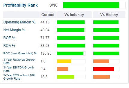 Al netto di tasse, svalutazioni e ammortamenti vediamo che l’azienda ha margini molto elevati al 40.04%, il che le conferisce di avere un margine operativo altrettanto elevato al 44.15%.