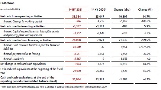 Il core business di AMADEUS FIRE ha generato, nel semestre, copiosi flussi di cassa. La società ha ripreso a corrispondere i dividendi agli azionisti (€ 8, 86 mln) ed ha inoltre rimborsato debiti per € 18,5 mln.