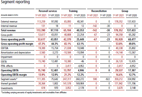 Il primo semestre è stato particolarmente buono per AMADEUS FIRE: i ricavi e l’EBITA sono aumentati più del previsto. Contrariamente alle aspettative originali, il segmento dei servizi del personale ha già migliorato i livelli del 2019.