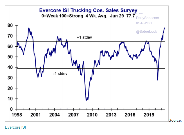 E ci aggiungo come ciliegina anche le vendite delle società di trasporti via camion che sono arrivate ad un picco storico. Navi e camion sono murati di merci e non ce la fanno a consegnarle, questa è la situazione degli USA e prima o poi gli schizzi di questa situazione arriveranno anche da noi.