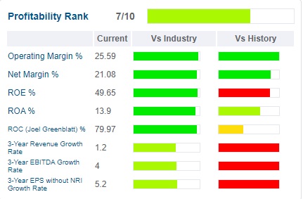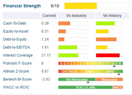 L’indicatore Piotroski a 8 indica che le azioni dell’azienda sono assolutamente sicure per gli investitori che decidono di comprarle. L’indicatore Piotroski combina voci dello stato patrimoniale e del conto economico.