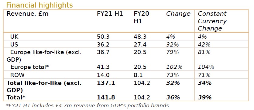Il management prevede per l’intero 2021 ricavi compresi tra £ 295 milioni - £ 304 milioni.