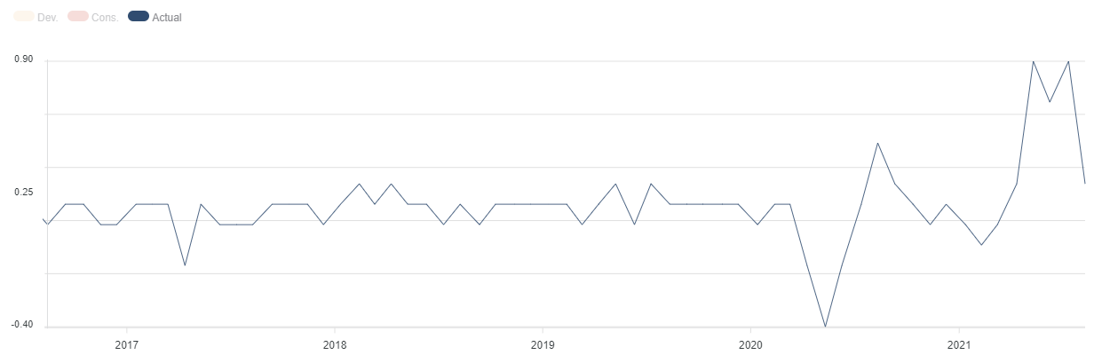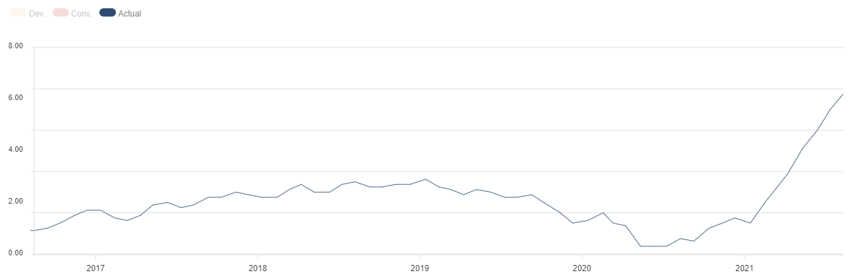 A seguire le dichiarazioni senz’altro più “morbide” di Raphael Bostic, numero uno della FED di Atlanta, che ha indicato il quarto trimestre come periodo da tenere d’occhio per l’inizio di un “tapering” dell’acquisto di obbligazioni, anche se è aperto ad una partenza anticipata nel caso in cui il mercato del lavoro dovesse mantenere il suo recente ritmo di miglioramento. Inoltre, Bostic e Tom Barkin, presidente della FED di Richmond pensano che l’inflazione abbia già raggiunto la soglia del 2% fissata dalla FED, uno dei due requisiti da avere prima di iniziare a considerare aumenti dei tassi.