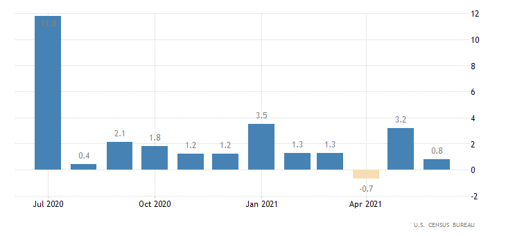 Gli ordini di beni durevoli di Giugno hanno deluso uscendo a 0,8% contro attese per 2,1%, anche se le revisioni del mese di Maggio (3,2% al posto di 2,3%) attenuano la negatività.