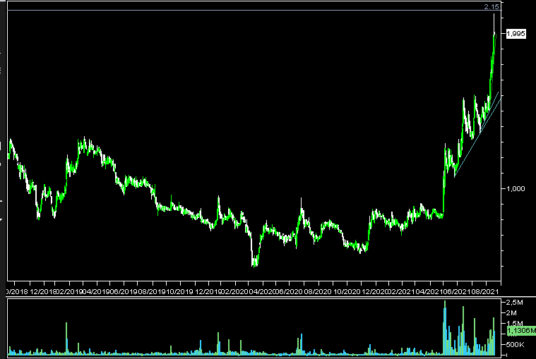 E' tornata ai fasti del 2017 quando aveva raggiunto lo stesso valore massimo ai 2.15€.