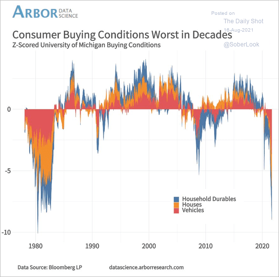Che sia tutto al rialzo ormai è noto e il grafico che posto qui sotto indica come per comprare casa, arredi per la casa e automobili questo sia il peggior momento negli ultimi decenni. Ovviamente se non è il momento di comprare è sicuramente il momento di vendere: a buon intenditor poche parole !