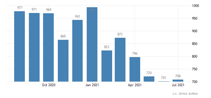 Le new home sales di luglio hanno sorpreso in positivo e anche la revisione di giugno contribuisce a collocare le vendite di nuove case su un percorso assai più robusto, anche se il paragone con la seconda metà del 2020 (boom immobiliare) sarà assai sfavorevole per tutta la seconda metà del 2021. I prezzi continuano a essere assai elevati e la scorta di case da vendere quasi ai minimi, ma il numero di cantieri in corso e quelli non ancora iniziati è elevato e dovrebbe arrivare a ridurre la scarsità. A livello mensile, a luglio il numero di nuove case vendute sono state 708 mila (oltre al consensus, fissato a 700 mila) contro le 701 mila (dato rivisto da 676 mila) di giugno. Il dato fa segnare un +1% registrando una crescita dopo tre mesi consecutivi in contrazione. Il dato è rilasciato dall’U.S. Census Bureau.