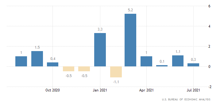 Per quanto riguarda l’indice dei prezzi di spese per consumo personale core (che esclude il settore dell’energia e del cibo) a livello mensile a luglio registra un +0,3% (come previsto dal consensus); crescita leggermente inferiore al +0,5% del mese di giugno (rivisto da +0,4%). Il dato annualizzato a luglio segna un +3,6%, come previsto dal consensus e come nel mese di giugno. I due dati sono rilasciati dall’U.S. Bureau of Economic Analysis.