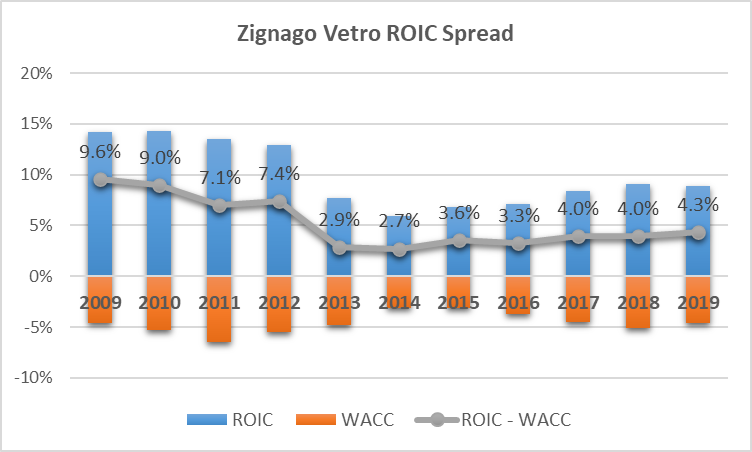 Non sorprende quindi che negli ultimi dieci anni il ROIC spread (ROIC – WACC = rendimento sul capitale investito - costo medio ponderato del capitale) sia sempre rimasto in territorio positivo, ad indicare una costante creazione di valore per i portatori di capitale.