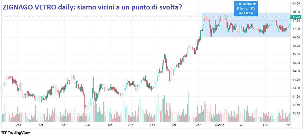 Dal punto di vista grafico, da aprile a questa parte il titolo sta congestionando sui massimi storici. Lunedì Intesa Sanpaolo ha confermato il giudizio add e ha aumentato il target price da 18.8€ a 20.2€, martedì il titolo ha reagito con un deciso +3.14%: potrebbe essere giunta l’ora di una nuova svolta al rialzo.