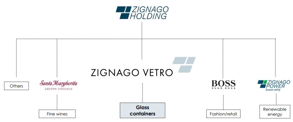 Zignago Vetro è la capogruppo di un gruppo di vetrerie. Fa a sua volta parte di Zignago Holding S.p.A, società di proprietà della storica famiglia di industriali veneti Marzotto, costituita da un portafoglio diversificato di aziende controllate.