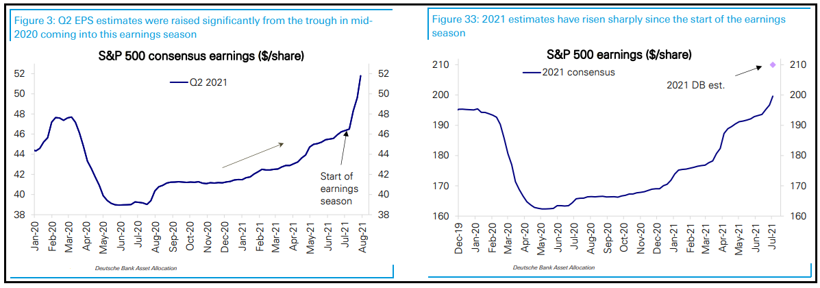 Nel frattempo la stagione delle trimestrali è ormai a due terzi a Wall Street, quindi i trend generali sono ormai stabiliti. Deutsche Bank ha prodotto uno studio dettagliato in cui mostra le principali risultanze: