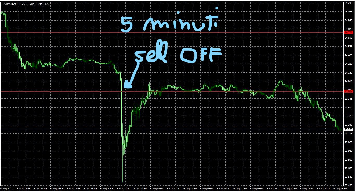Osservando il grafico a cinque minuti si nota quanto "cattive" siano state le vendite ed il sell off innescato....e quanto sia facile manovrare i mercati in tempi di illiquidità specialmente con i mercati europei chiusi (le vendite sono partite naturalmente dall'Asia visto che in Europa non era ancora l'alba). De facto è stato lanciato l'amo alla ricerca del pesce pollo.