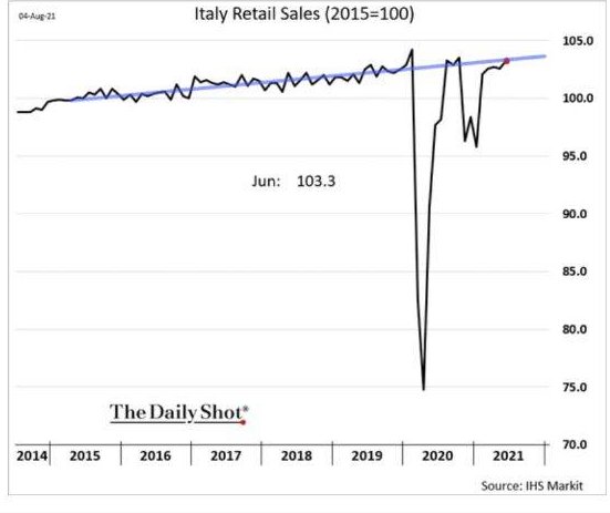 Segue il grafico delle vendite in Italia che sono tornate al livello pre-pandemico: