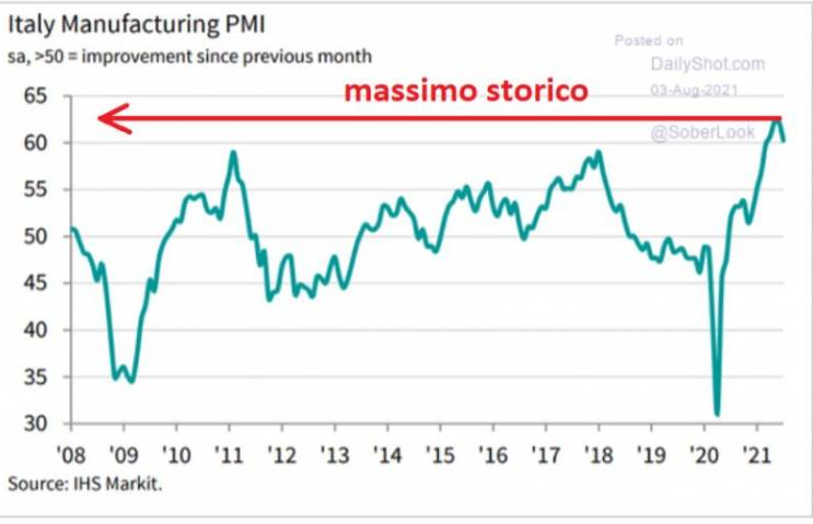 Ed infine il re degli indici anticipatori sull’attività manifatturiera delle aziende PMI che è andato semplicemente sui massimi storici