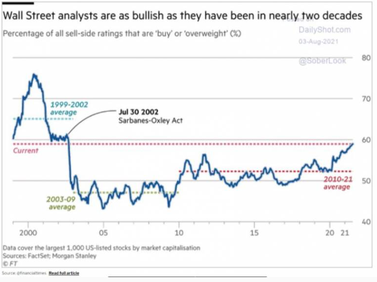 E quello che più conta è che gli analisti di Wall Street sono talmente ottimisti che anche sotto questo profilo andiamo a sfiorare un altro record storico ventennale: