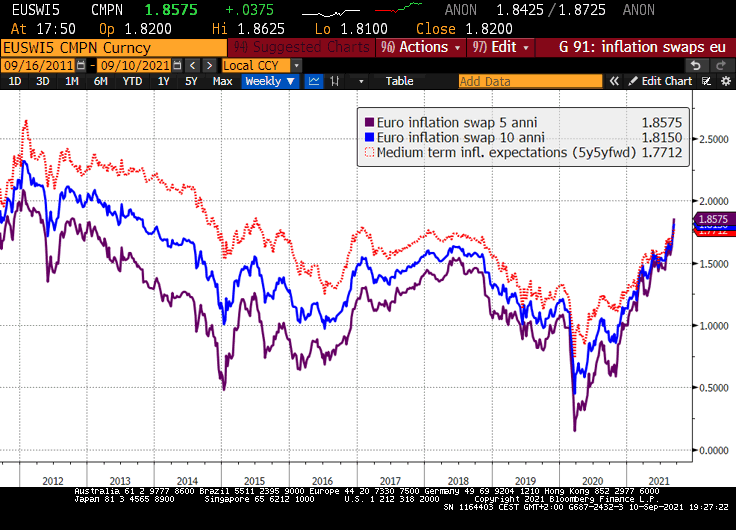 Sul fronte fiscale USA il percorso non sembra privo di ostacoli. Il Senatore Manchin sembra sia concorde con meno di un terzo del piano da 3.5 mld $. Come noto, senza l'accordo di tutti e 50 i Senatori Dem niente “reconciliation”. Alcune fonti rivelano che tra i Democratici al Senato e alla Camera sono parecchie divergenze sui contenuti del piano. Stephanie Murphy, un importante democratico moderato della Camera, ha indicato che sta pianificando di votare contro le disposizioni in esame, sostenendo che il processo è importante e vuole che i suoi elettori abbiano fiducia in quello che sta facendo. Ha affermato di sostenere molte delle proposte contenute nel pacchetto di spesa dei democratici ma che si trova in una situazione impossibile, aggiungendo che si aspetta di votare "no" se qualcosa non cambia. Anche queste news possono essere foriere di qualche tremore. Se entro fine settembre non si ottiene un accordo sul budget, il governo USA avrà un nuovo “shutdown” (blocco delle attività amministrative negli Stati Uniti). C'è ancora diverso tempo, e ormai siamo abituati a questi spettacoli a Washington, ma comunque è da tenere a mente in quanto, al momento, non c'è un piano preciso, ma qualche chiacchiera su una misura temporanea che finanzi l'attività fino al Ringraziamento o a Natale.