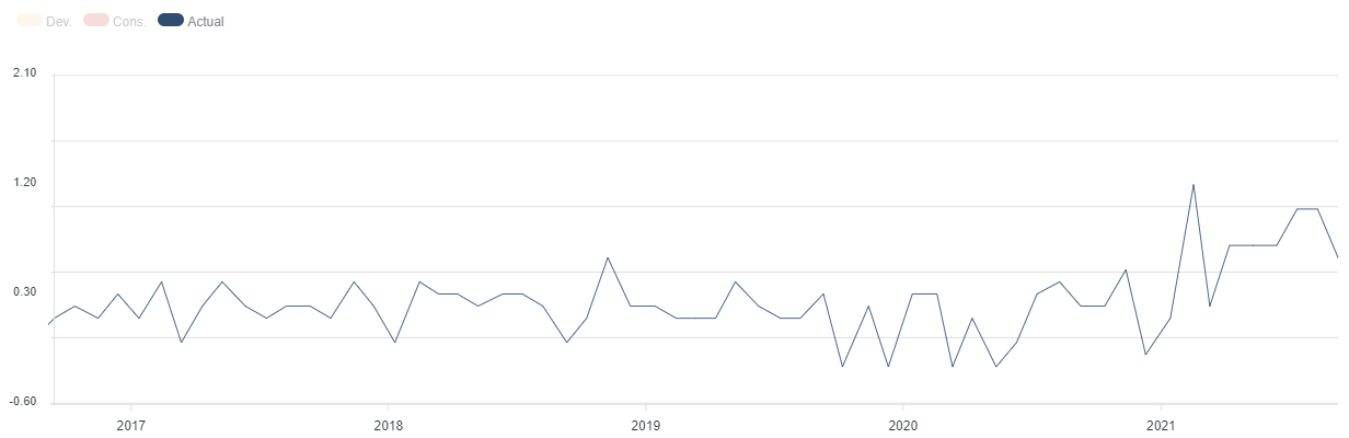 Un nuovo segnale di pressioni inflazionistiche in USA con i prezzi alla produzione di agosto sopra le stime, anche se il dato “core” che risulta più reale, è risultato quasi la metà del mese precedente. L’indice di prezzi alla produzione che non tiene conto dei settori del cibo e dell’energia a livello mensile, ad agosto, registra una crescita dello 0,6% praticamente in linea con il consensus (0,5%). A luglio era stata registrata una crescita dell’1%. A livello annualizzato, sempre ad agosto, l’indice registra un +6,7% (anche in questo caso appena sopra il consensus di 6,6%), dopo il +6,2% di luglio. I due dati sono rilasciati dall’U.S. Bureau of Labor Statistics.