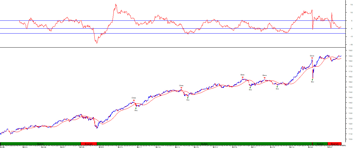 Tuttavia, lo strumento odierno può camminare a testa alta e si è mantenuto il 49.4% del periodo preso in considerazione (i soliti 10 anni circa) al di sopra di 70 e, il 44% del periodo, al di sotto di 30.