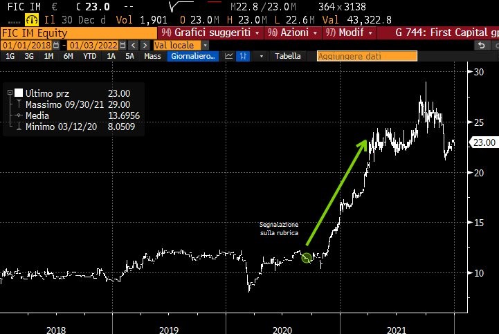 Anno molto positivo per il titolo che si riporta in prossimità delle quotazioni pre-covid.