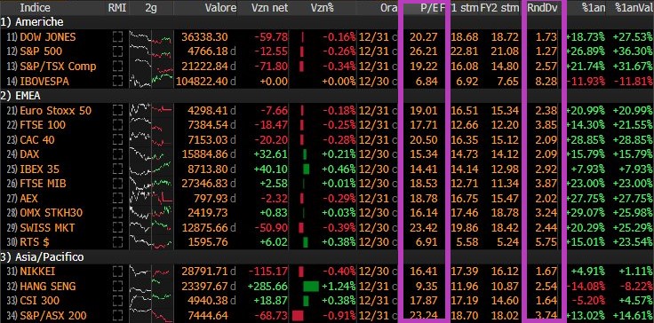 Nell’ultimo anno, grazie all’aumento degli utili riportato dalle società, il P/E si è ridotto.