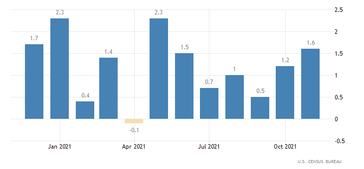 Gli ordini di fabbrica a livello mensile a novembre crescono dell’1,6%. Ad ottobre era stata rilevata una crescita dell’1,2% (dato rivisto da 1,0%). Il dato è rilasciato dall’U.S. Census Bureau.