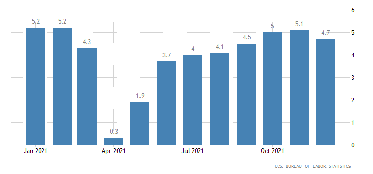 Dopo il meeting di dicembre, il gruppo decisionale ha mantenuto il suo tasso d’interesse di riferimento vicino allo zero, tuttavia i funzionari hanno anche indicato che nel 2022 prevedono aumenti fino a tre quarti di punto percentuale, altri tre aumenti nel 2023 ed altri due nell’anno successivo.