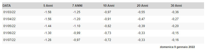 Di diverso tenore i Bond legati alle attese di inflazione che dal 2,60% di fine anno, tornano al 2,48% più che altro dovuto al rialzo dei tassi reali: