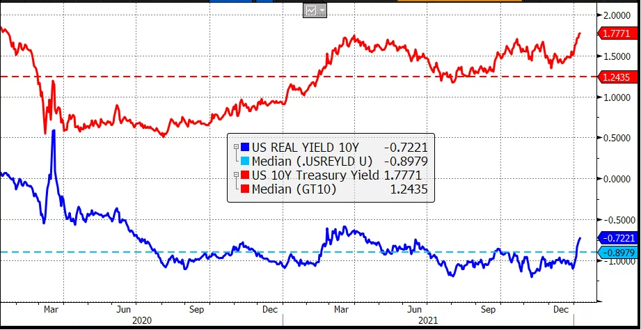 Il focus della settimana è stata l’audizione di Powell alla commissione bancaria del Senato per la sua conferma a capo della FED. Dalle note rilasciate ieri sera, si apprende che il numero uno della FED vuole evitare che l’inflazione si radichi nell’economia USA e per questo motivo faranno ricorso agli strumenti a disposizione della banca centrale. Tra questi strumenti, non c’è soltanto il rialzo dei tassi ma la FED, dopo aver chiuso entro marzo il quantitative easing (QE) sta pensando anche al quantitative tightening (QT) ossia la riduzione del bilancio. Per Powell, il recupero post-pandemia si delinea differente dalle precedenti crisi e questo rappresenta un aspetto da tenere in considerazione nelle decisioni della FED. Powell ha colto l'occasione dell'audizione per consegnare ufficialmente la nuova stance. In sostanza "scusate, ci siamo addormentati alla guida, e ora siamo in ritardo", "pensavamo di non alzare i tassi nel 2022 e ora non sappiamo se i 3 rialzi da noi previsti basteranno" e "improvvisamente consideriamo l'inflazione elevata un rischio per l'economia". Subito dopo c'è stato lo show dei membri Fed, tutti intenti a segnalare la nuova stance proattiva. Prima Ester George (Kansas City) e poi Loretta Mester (Cleveland) hanno ampiamente riportato il nuovo consenso. Bullard, numero uno della FED di St Louis e membro votante del FOMC, ha invocato 4 rialzi nel 2022 sottolineando quanto sia meglio procedere “sooner than later”. Per finire con Lael Brainard, nuovo vice governatore della FED, considerata a lungo come uno dei membri FED più tranquilli, ha sorpreso molti sottolineando come l’inflazione sia al momento la sfida più significativa che si trova ad affrontare la FED, allineandosi al resto del comitato. Tutto ciò in attesa della prossima riunione del FOMC del 26 gennaio.
