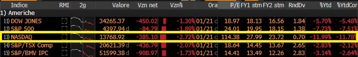 In appena tre settimane, tra i mercati principali, solamente tre borse sono state capaci di riportare variazioni positive (Brasile, Hong Kong e UK): per tutte le altre il segno è rosso (NASDAQ - 11,99%).